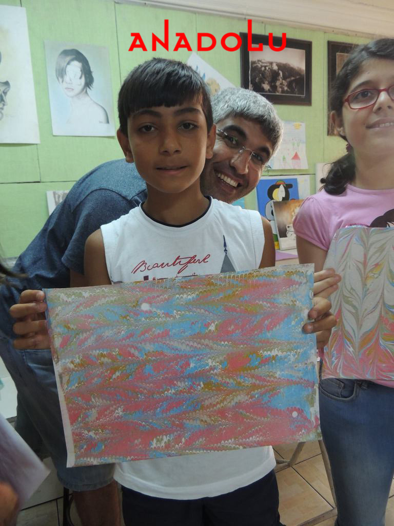 Ebru sanatı her çocuk yeteneklidir. Sadece ailelerin onları keşfetmelerini beklerler. Sizde çocuklarınızın yeteneklerini keşfetmek ve çocuğunuza yeni bir pencere açmak isterseniz Anadolu Sanat Merkezi’ni ziyaret edebilirsiniz. Çocuklar için Ebru Eğitimi verebilecek başlıca sanat atölyesiyiz. Eğitimi verecek öğretmelerin bilgi ve donanımları, kurs ortamı ve kurs malzemelerinin tamamını atölyemizden tedarik edebilirsiniz. Böylelikle bu konuda sürekli araştırma yapmak ve zaman harcamak zorunda kalmazsınız. Geleneksel El Sanatları alanının incisi olan ebru eğitimi konusunda yapılan çalışmaları web sitemizden inceleyebilirsiniz. Yapılan çalışmaların tamamı videolar ile desteklenmiştir. Böylelikle verilecek eğitimin içeriği hakkında bilgi sahibi olabilir ve gönül rahatlığı ile çocuğunuzu emanet edebilirsiniz.